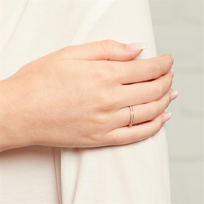 Alliancering i 8 karat Rødguld med zirkoniasten