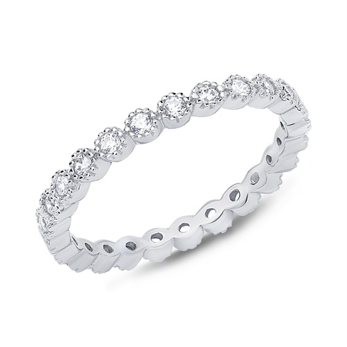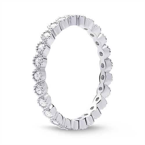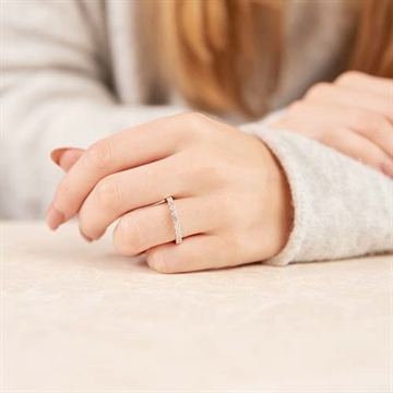 Allianceringens overflade er poleret og den er besat med funklende runde zirkoniasten