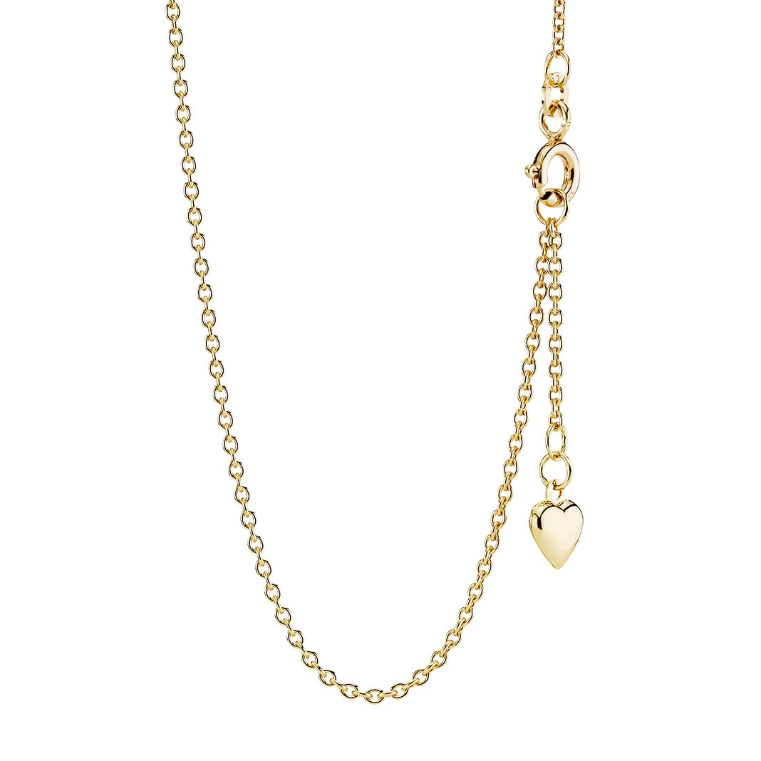 Kædens overflade er poleret og den har et yndigt hjerte som vedhæng