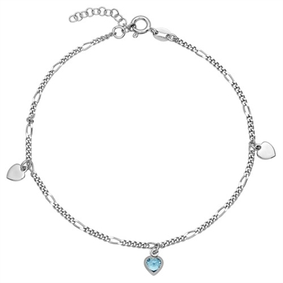 Ankelkæde i Sølv med hjerter