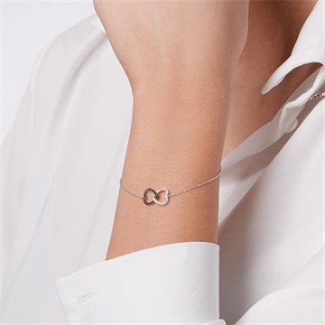 Armbånd i 14 karat hvidguld med 2 hjerter