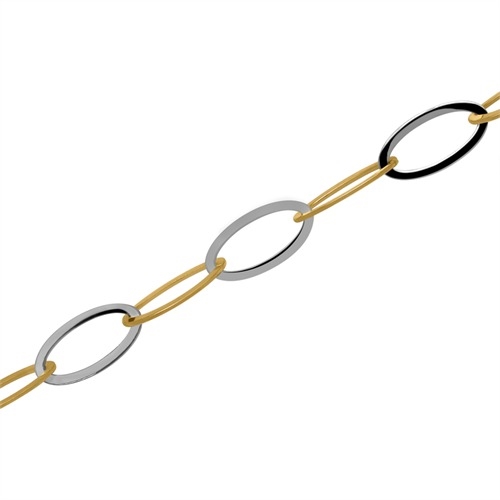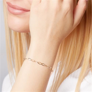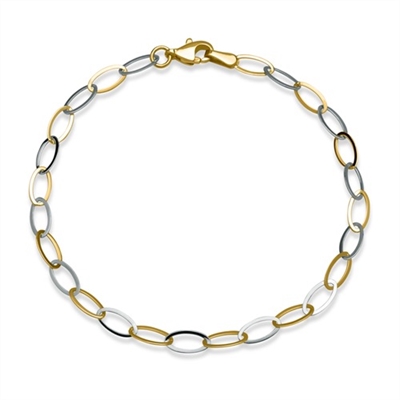 Armbånet er med ovale led i skiftevis guld og hvidguld og med karabinlås