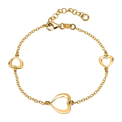 Yndigt armbånd i forgyldt sølv med hjerter