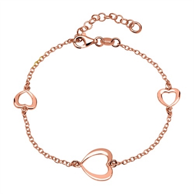 Armbånd i Rosaforgyldt Sølv med hjerter