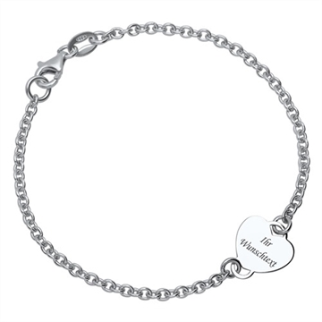 Armbånd i Sølv med hjerte og gravering