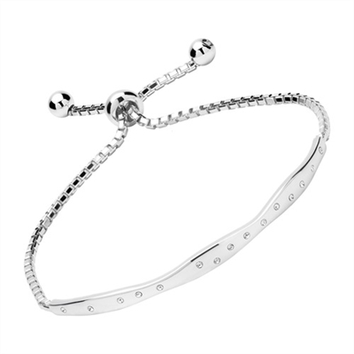 Elegant delvis bølgeformet armbånd besat med funklende zirkoniasten. Armbåndet er med veneziakæder og sølvkuger for enderne