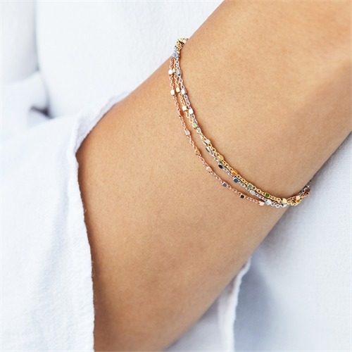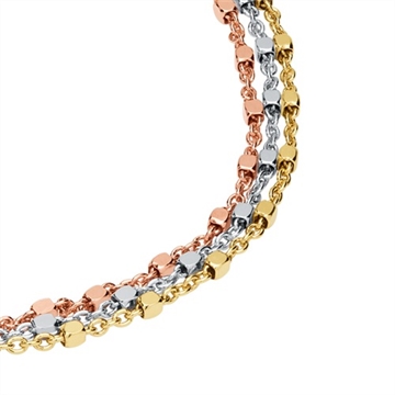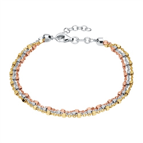 Yndigt armbånd i forgyldt, rosaforgyldt sølv med små fikantede elementer