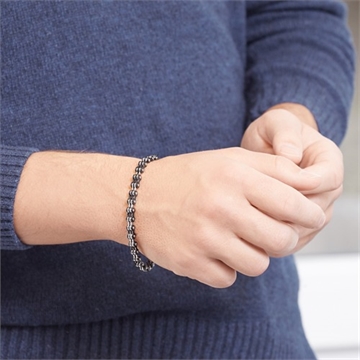 Armbånd i smart businesslook med delvis sorte og sølvfarvet led