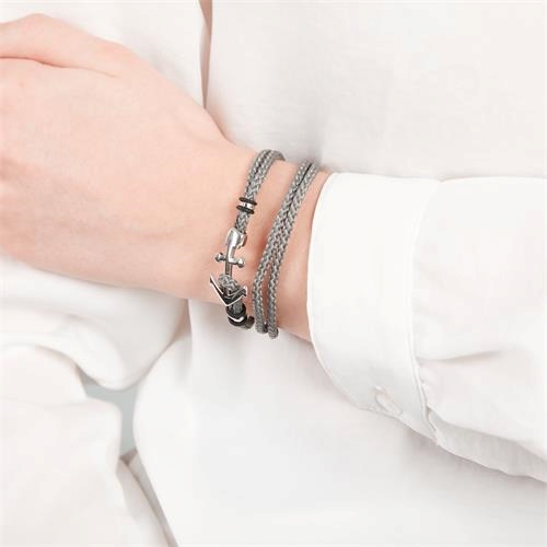 Gråt armbånd i tekstil med smart anker som lås
