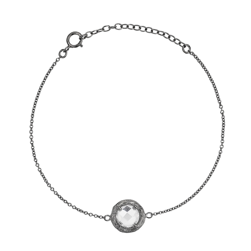 Blankt armbånd i sort sølv med en stor zirkonia fra Lund Copenhagen