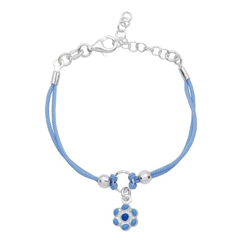 Blåt pigearmbånd med blomst i sølv
