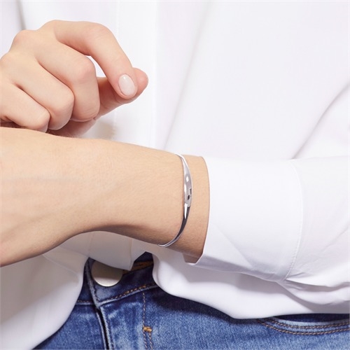 Armringen er udført i et asymetrisk design og ikke helt lukket