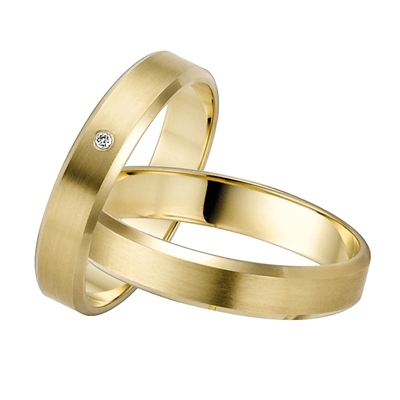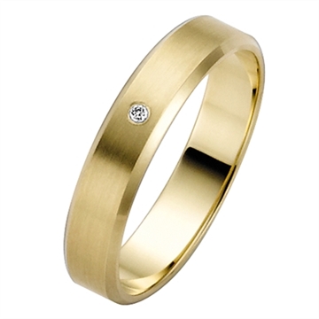 Vielsesringe i guld med 0,01 ct. w/si diamant fattet i dameringen