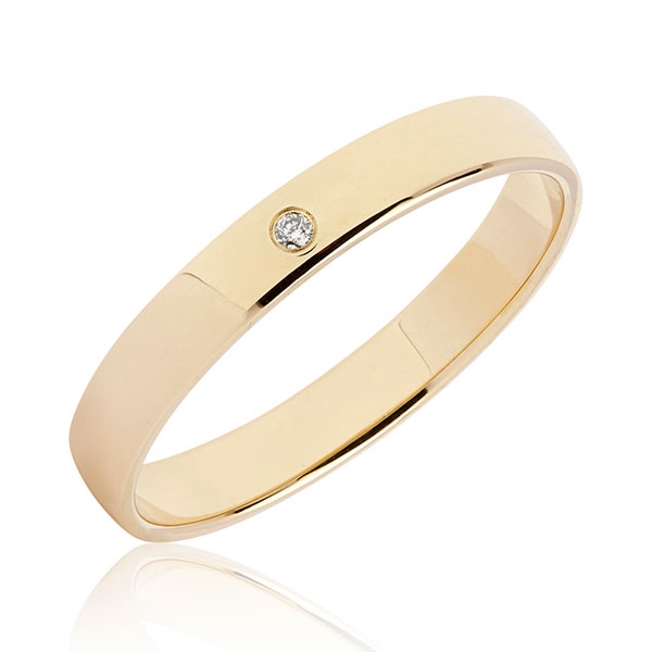 Klassiske vielsesringe i guld med diamant 0,01 ct. w/si fattet i dameringen
