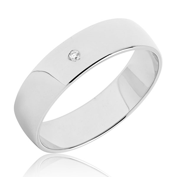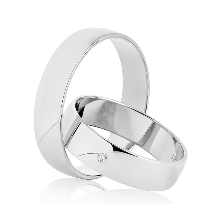 Klassiske vielsesringe i 14 kt. hvidguld med diamant 0,01 ct. w/si fattet i dameringen