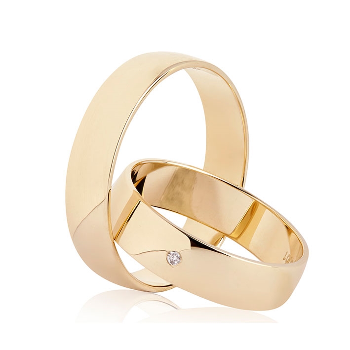 Klassiske vielsesringe i 8 kt. guld med diamant 0,01 ct. w/si fattet i dameringen