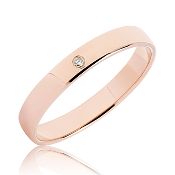 Klassiske vielsesringe i 8 kt. rosaguld med diamant 0,01 ct. w/si fattet i dameringen