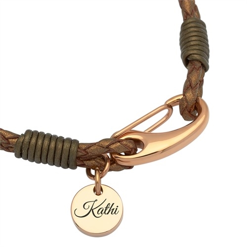 Bronzefarvet læderarmbånd m. gravering
