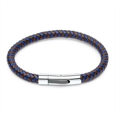 Brunt/blåt flettet Læderarmbånd til herrer