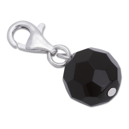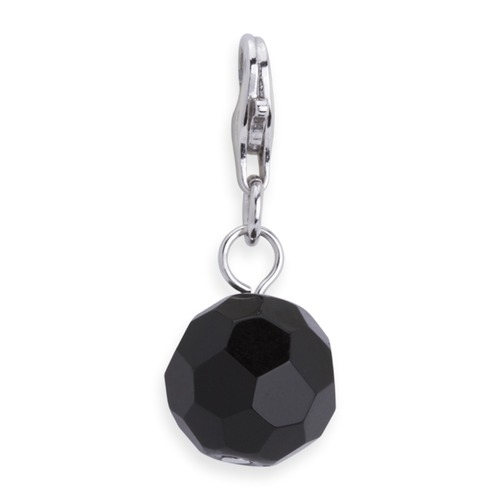 Charm i sølv med rund sort kugle