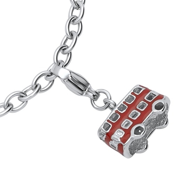 Charm i stål med en rød bus
