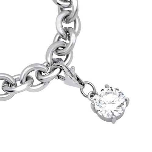 Charm i stål med zirkonia facetsleben zirkonia sten