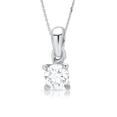En flot klassisk halskæde med et fin facetsleben diamantvedhæng i 14 karat hvidguld