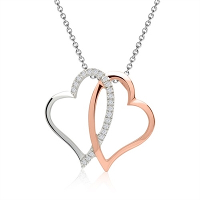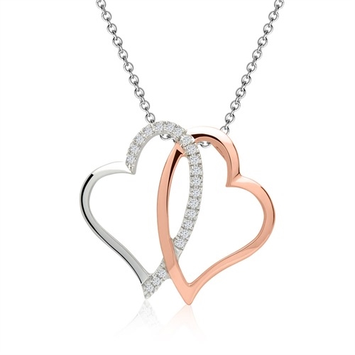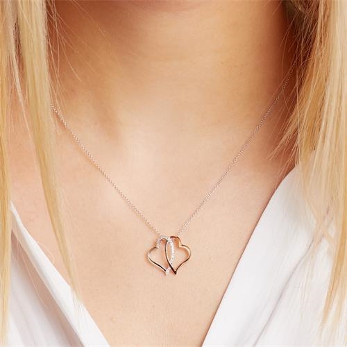 De asymetriske hjerternes overflade er rhodineret og det ene er besat med 29 hvide diamanter det andet rosaforgyldt
