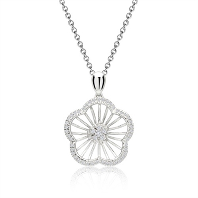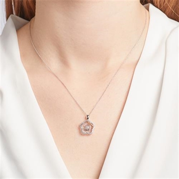 Halskæden er 42 cm lang og blomsten er med 51 hvide diamanter (0,107 ct)