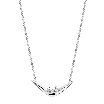 Halskæden er med vingeformet vedhæng besat med 3 funklende diamanter