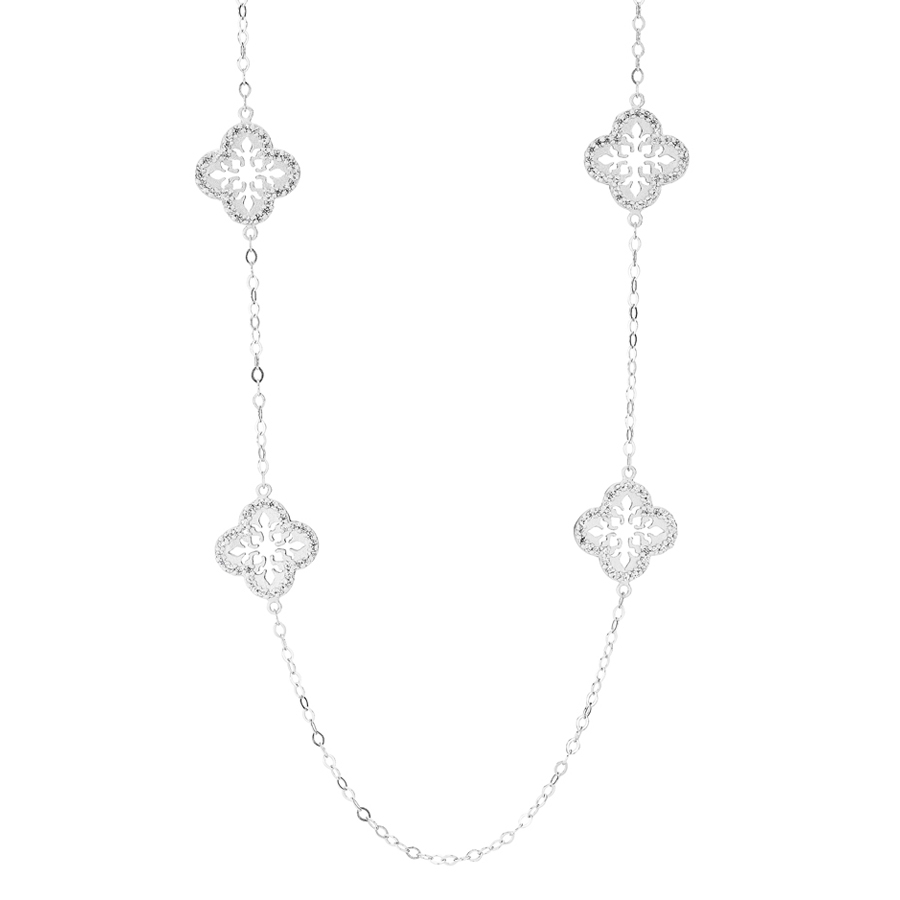 Halskæden er med 4 kløverformet vedhæng besat med zirkoniasten