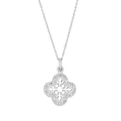 Halskæden er med en kløverformet vedhæng besat med zirkoniasten