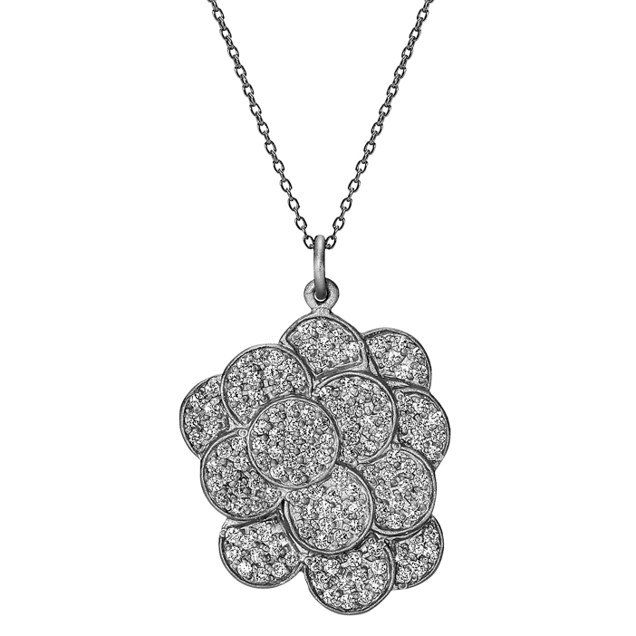 Collier med blomst i sort Sølv fra Lund Copenhagen