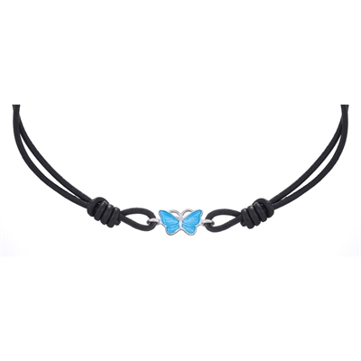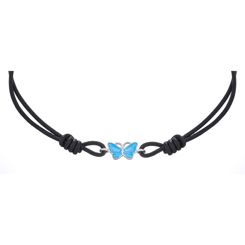 Sort læder collier med lyseblå sommerfugl fra Lund Copenhagen