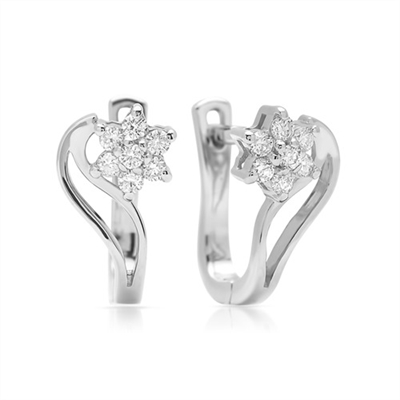 Creoler i elegant blomsterdesign besat med 14 hvide funklende diamanter