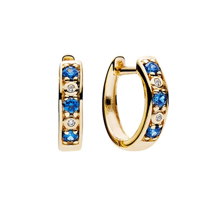 Elegante creoler i guld besat med henholdsvis blå og hvide zirkoniasten