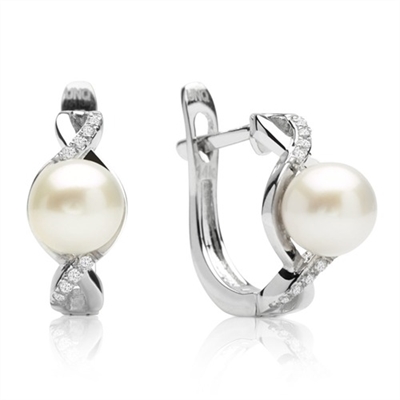 Creoler i 14 karat Hvidguld med diamanter og perler