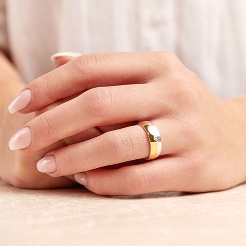 Delvis forgyldte forlovelsesringe og vielsesringe i Sølv