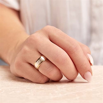 Vielsesringenes overflade er delvis poleret og mat med forgyldte kanter