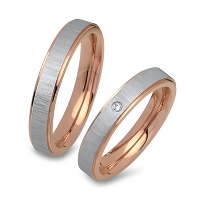 Delvis rosaforgyldte forlovelsesringe og vielsesringe i Stål