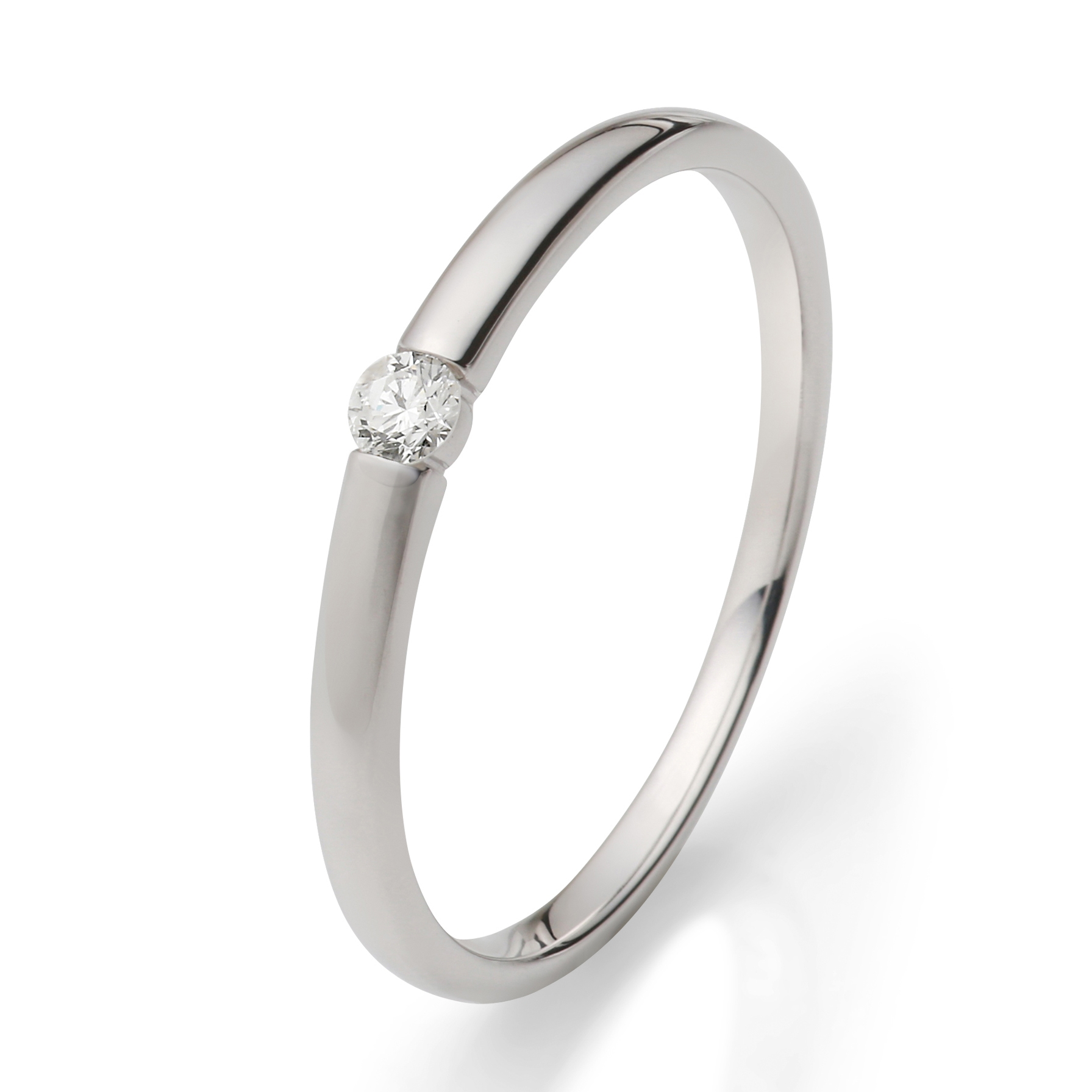 Diamantring i 9 kt. hvidguld med brillantsleben diamant. Samlet vægt af diamanten 0,06 ct.- tw/si