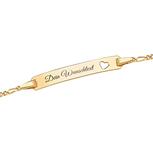 Figaro armbånd i 9 kt. Guld med Hjerte fra 12 cm - Mulighed for gravering