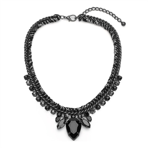 Sort flettet halskæde med sten