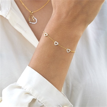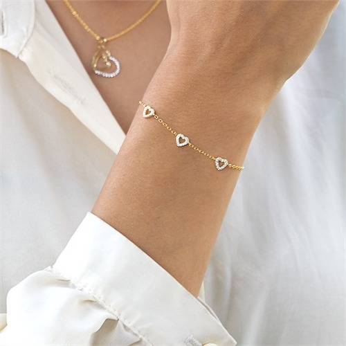 Armbåndet er med 3 hjerter besat med funklende zirkoniasten