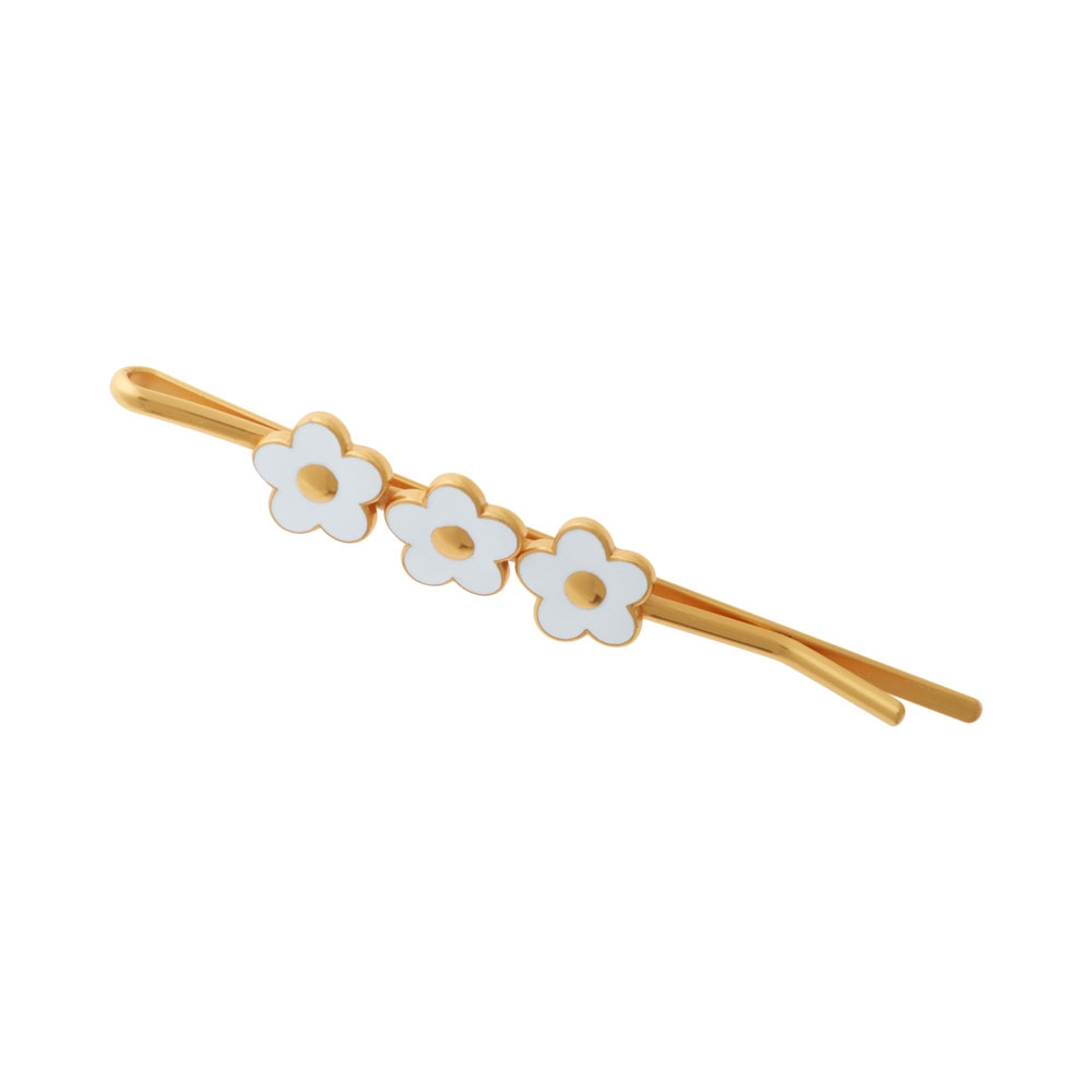 Forgyldt hårklemme m. hvide blomster