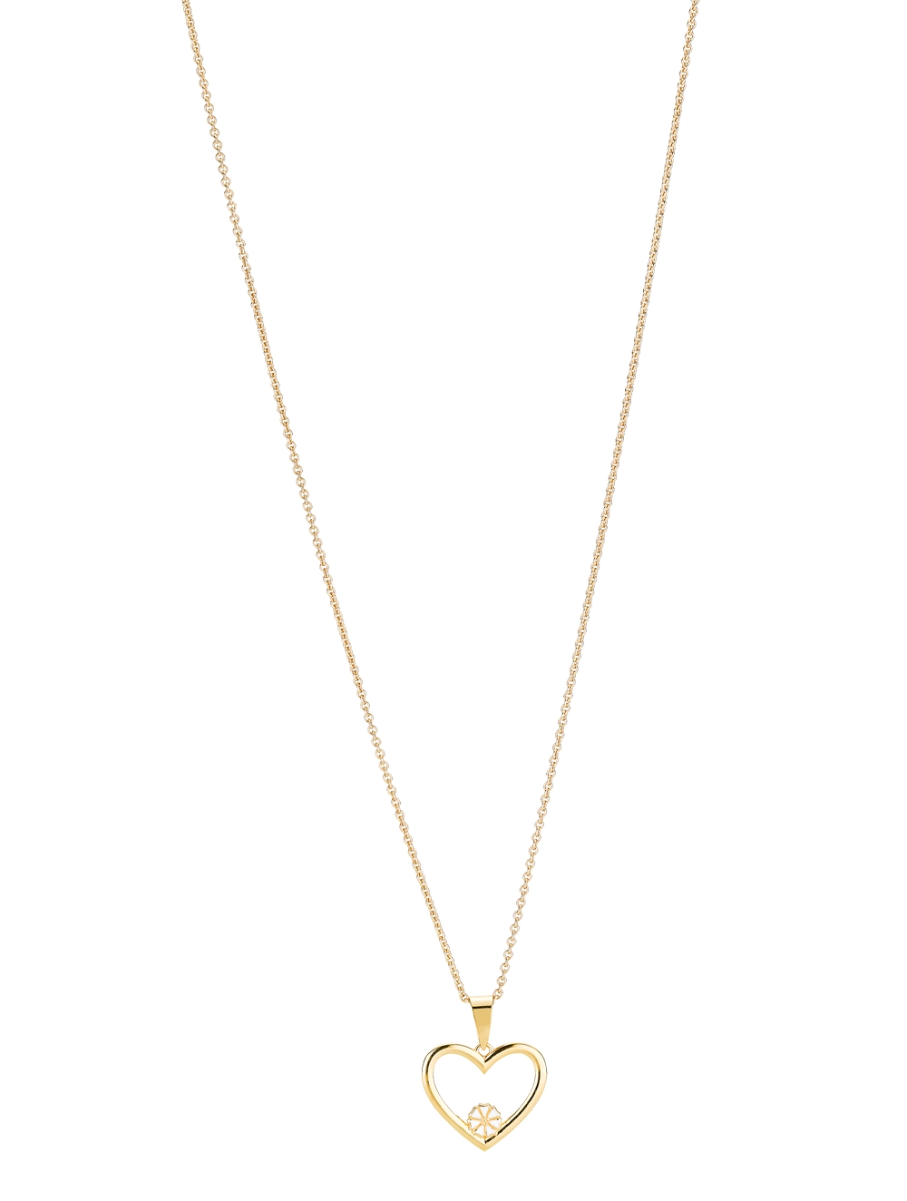 Halskæden er med et åbent hjerte og en fin hvid marguerit med en diameter på 5,0 mm