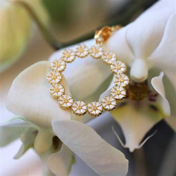 Det runde vedhæng er med 14 hvide margueritter med en diameter på 5,0 mm