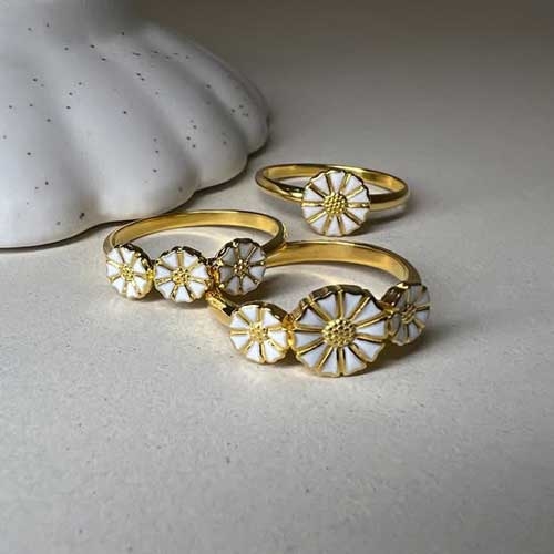 Ringen er med 3 hvide margueritter med en diamter på 5,0 mm
