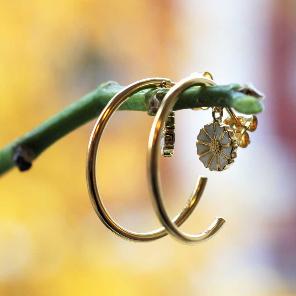 Forgyldte Marguerit creoler i Sølv fra Lund Copenhagen