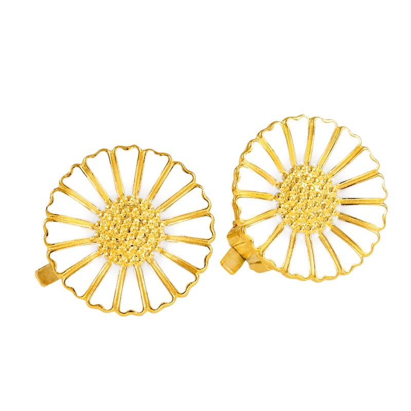 Forgyldte Marguerit øreclips - 18 mm